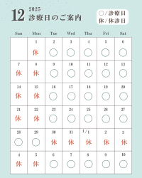 年末年始の診療日程のお知らせです。